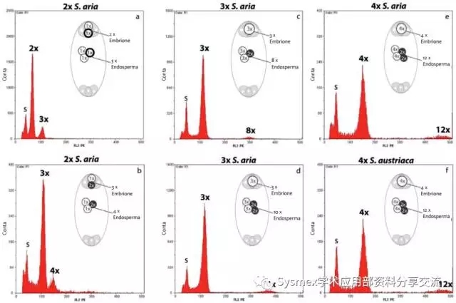 孤雌生殖是一種不經(jīng)過受精但產(chǎn)生種子生殖方式。其繁殖后代與母體是相同的。流式圖中的峰是由于種子的胚胎和胚乳細胞由無特定的孤雌生殖以及孤雌生殖的方式產(chǎn)生。(圖5)