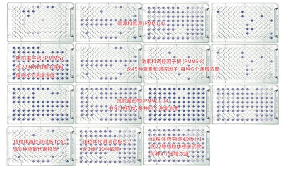 PMM哺乳動(dòng)物細(xì)胞表型,高通量測(cè)定哺乳動(dòng)物細(xì)胞常見的代謝表型,包括4塊碳源和氮源能量代謝板、1塊陰陽離子板、3塊激素和調(diào)控因子板、4塊抗腫瘤藥物板及3塊線粒板等15塊微孔板,近1500種表型。