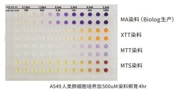 BIOLOG專利開發(fā)的MA/MB/MC染料,與傳統(tǒng)的細(xì)胞染料XTT、MTT和MTS相比,具有背景顏色干擾小、靈敏度更高、線性范圍更寬等特點(diǎn),是PMM平臺(tái)最核心技術(shù)之一。