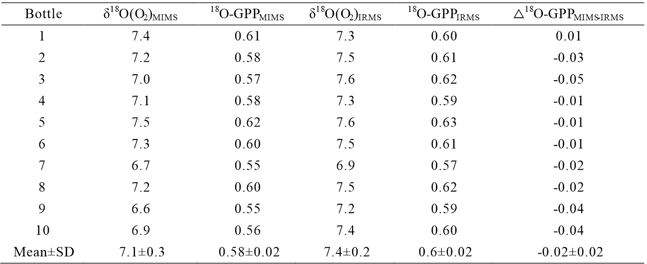 15. Sara F, Daniela A V, Karin M B, et al. Application of membrane inlet mass spectrometry to measure aquatic gross primary production by the 18O in vitro method. Limnology and Oceanography: Methods, 2016, 14: 610-622
