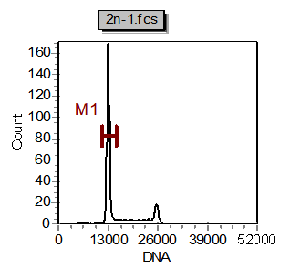 傳統(tǒng)的倍性鑒定主要采用常規(guī)壓片法統(tǒng)計染色體數(shù)目,但采用這種方法很難尋找到分裂中期染色體分散良好并可進行計數(shù)的細胞,而且整個過程耗時長,檢測效率低。采用流式細胞術(shù)(Flow Cytometry,F(xiàn)CM)進行倍性分析的方法簡化了倍性分析的過程,可以快速準(zhǔn)確檢測同一物種范圍內(nèi)不同倍性的樣品。FCM作為一項快速、高效的檢測技術(shù),被廣泛應(yīng)用于細胞分類學(xué)、植物遺傳學(xué)及植物生理學(xué)等研究領(lǐng)域中。FCM常被用于鑒定植物倍性水平,通過檢測植株G0/G1峰的細胞核DNA含量可以判斷出植物的倍性。